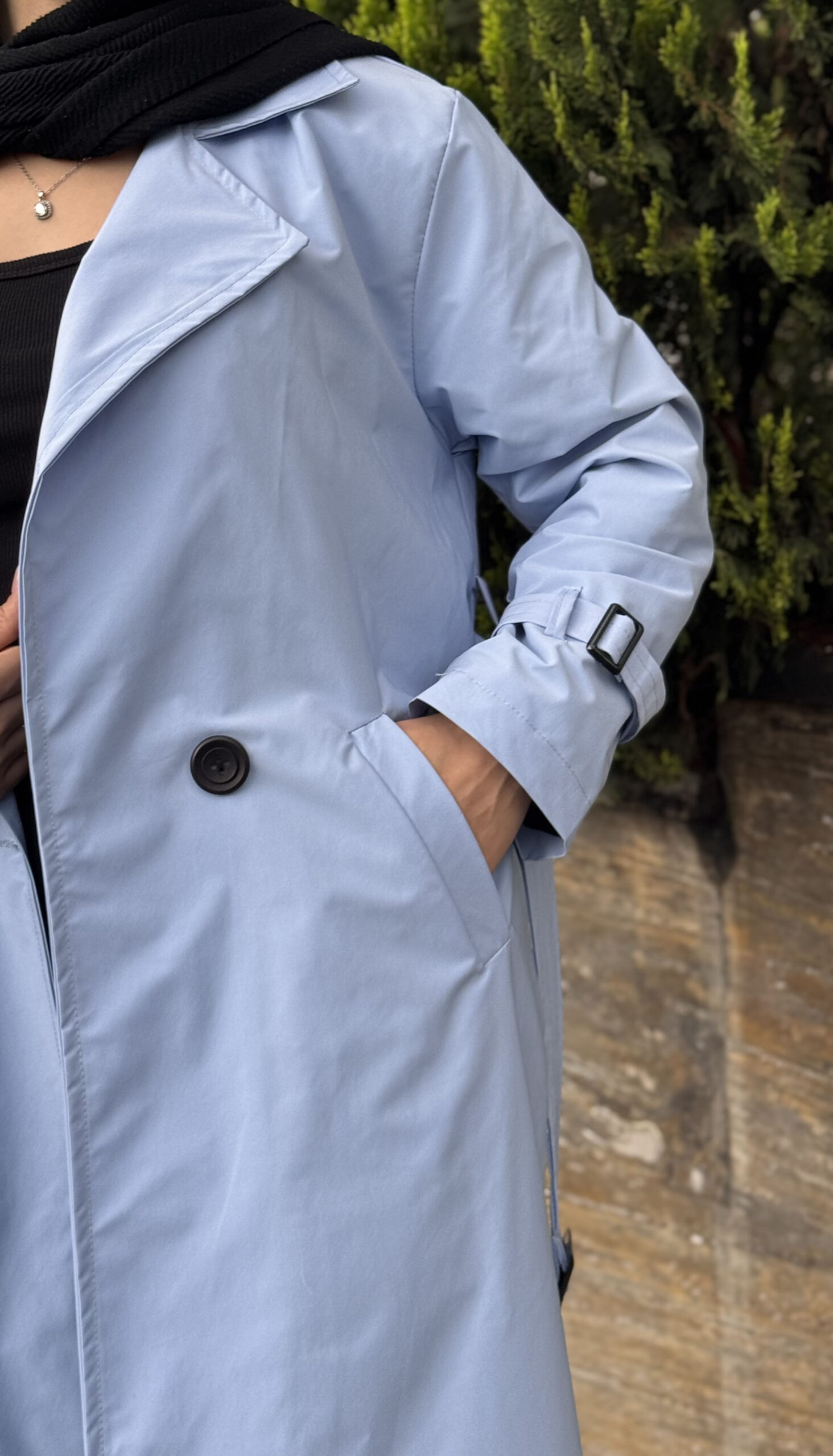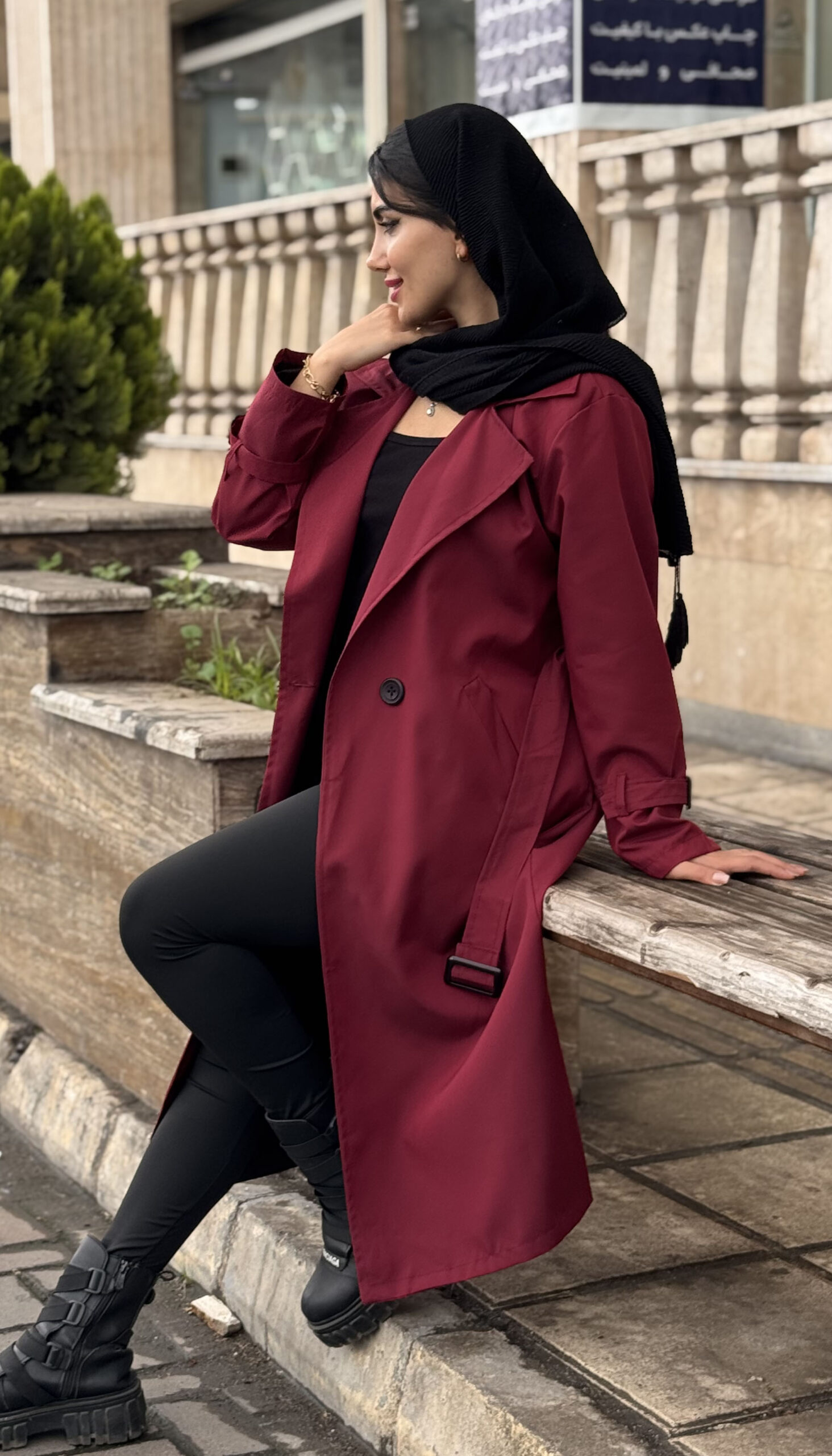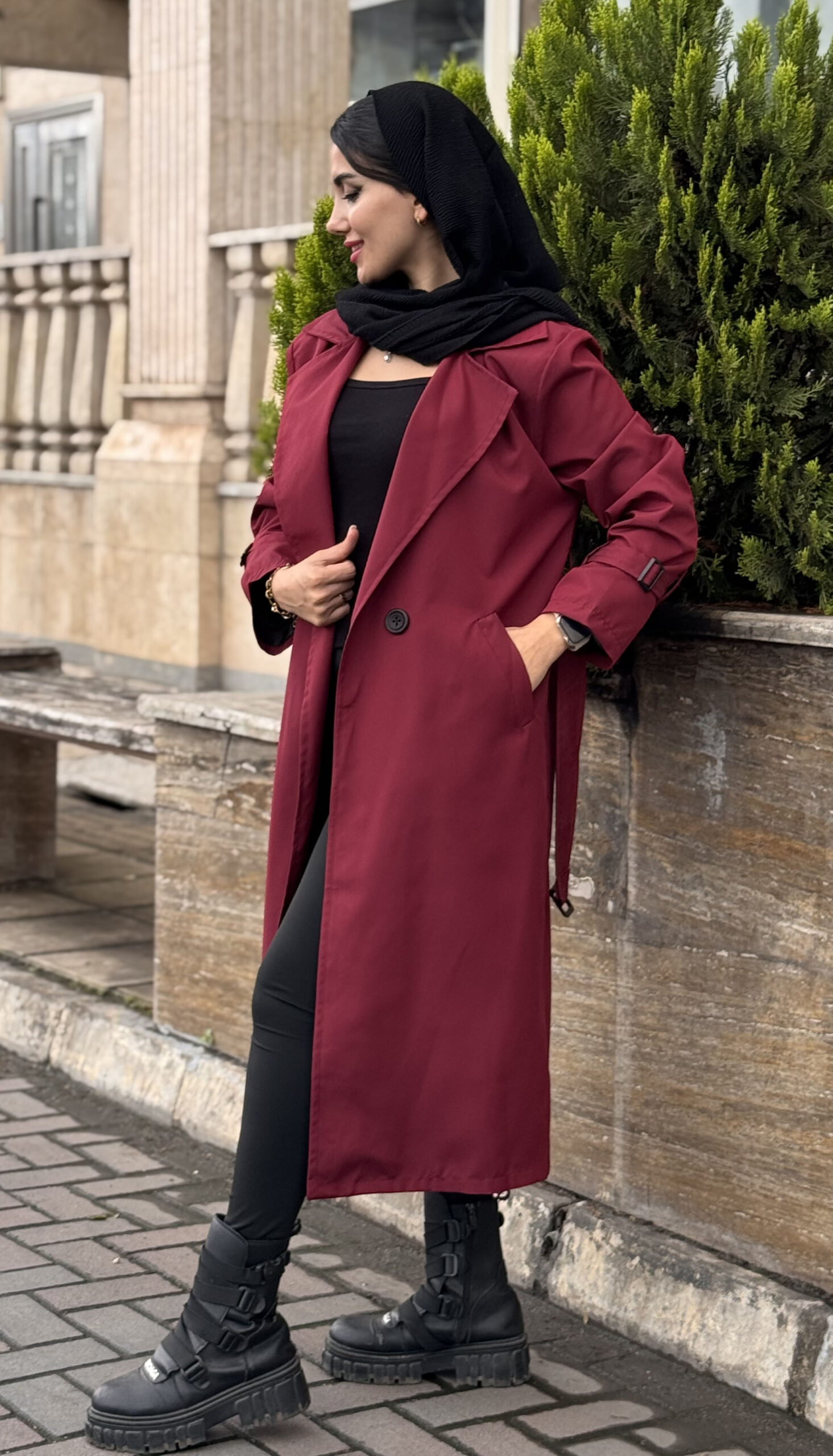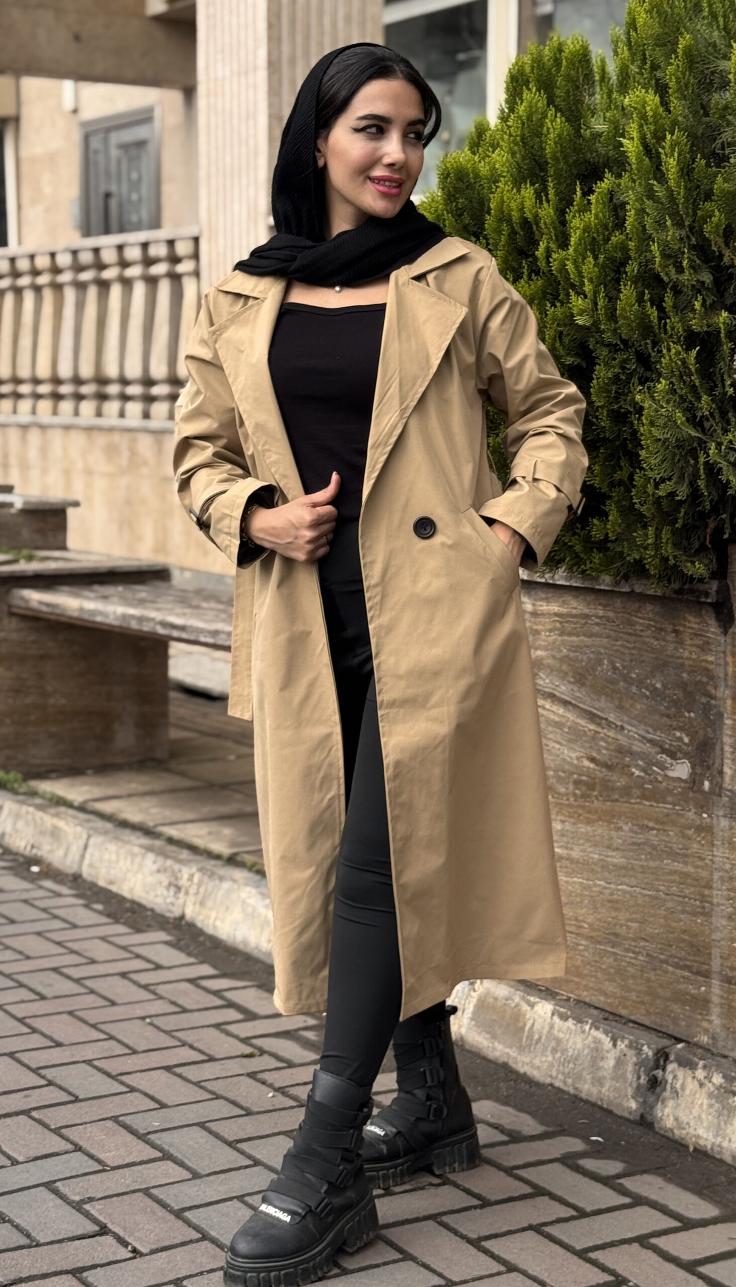 ترنچ کت کمربند داره و سر آستین هاش هم بند داره