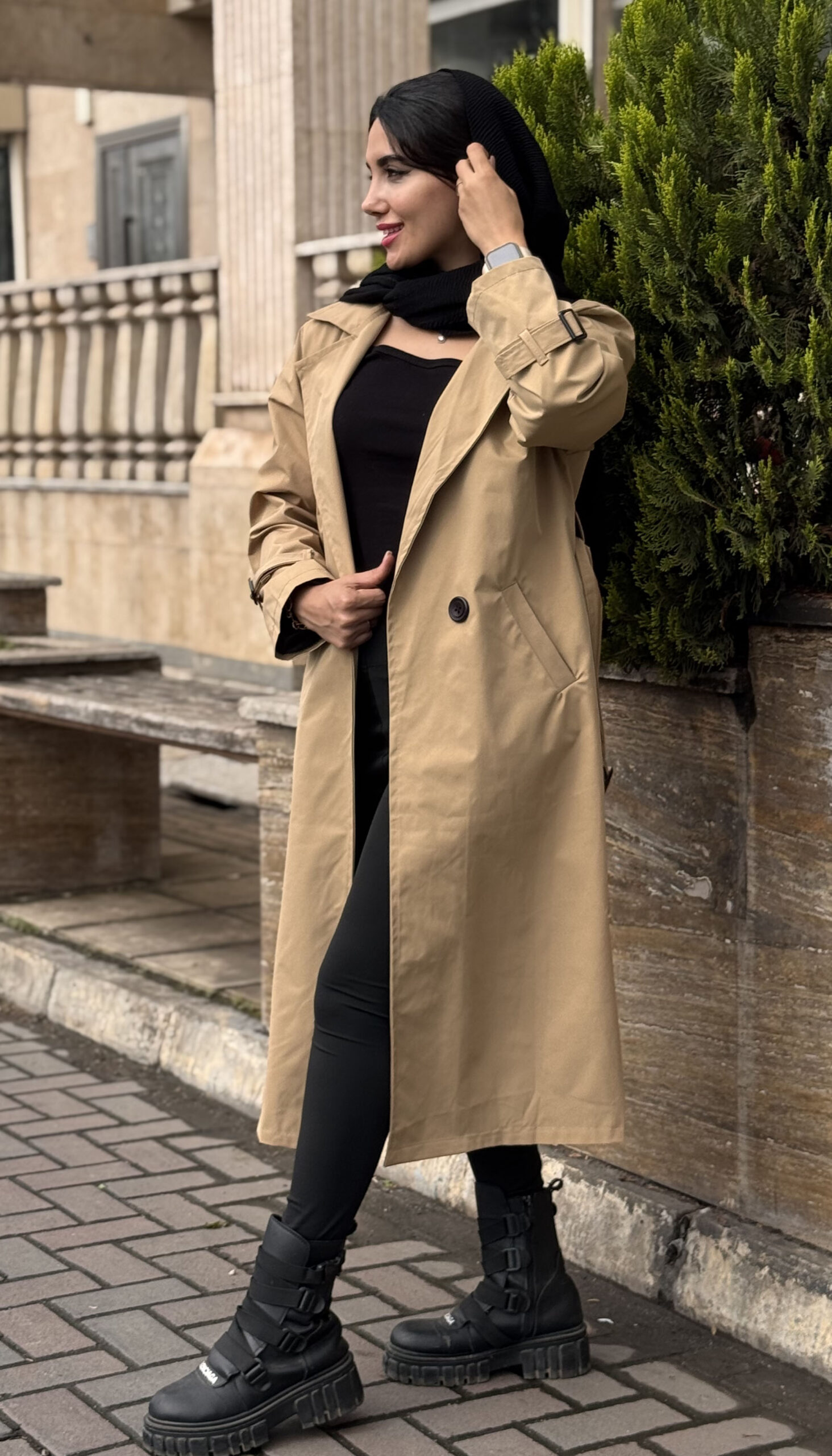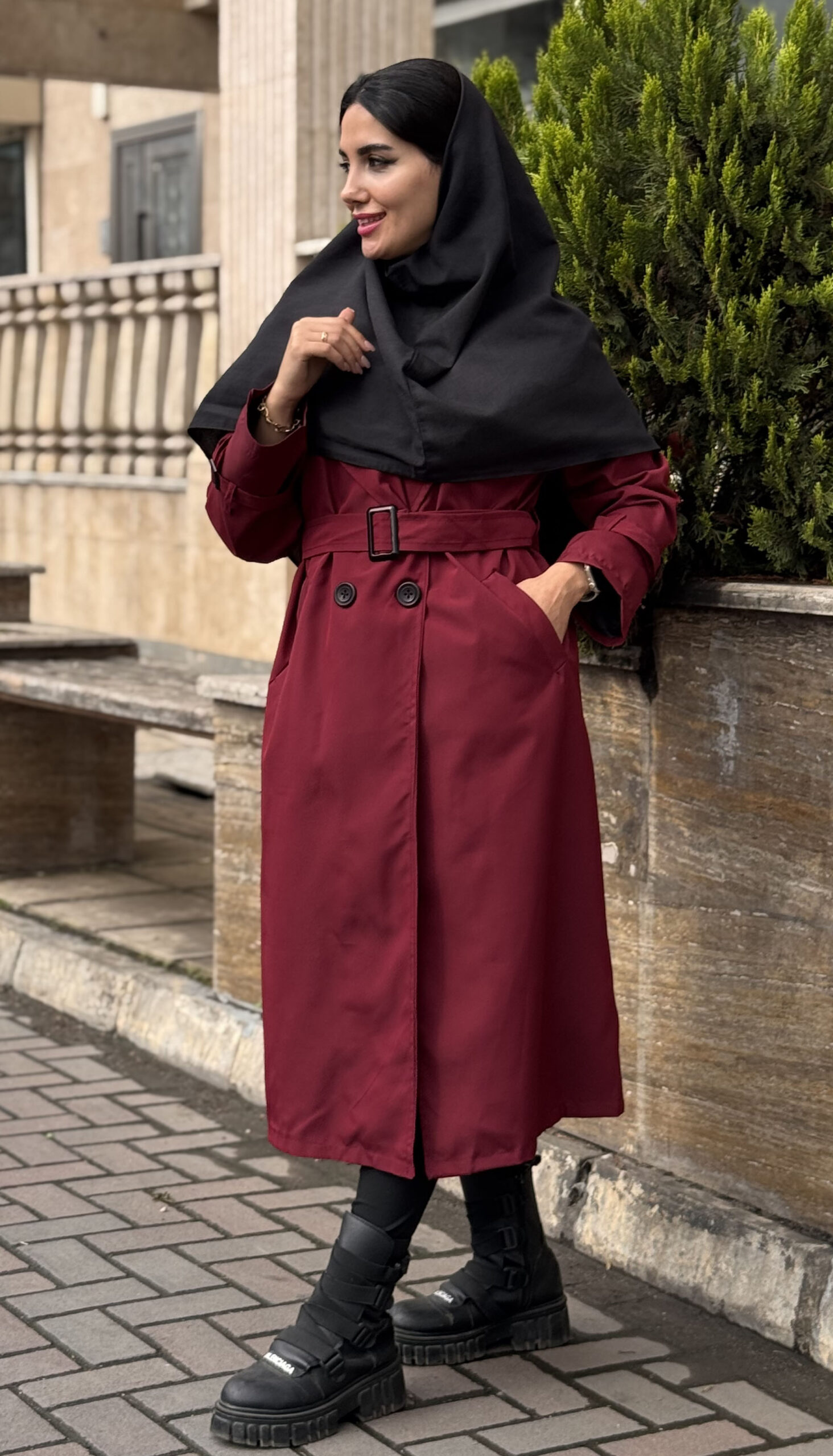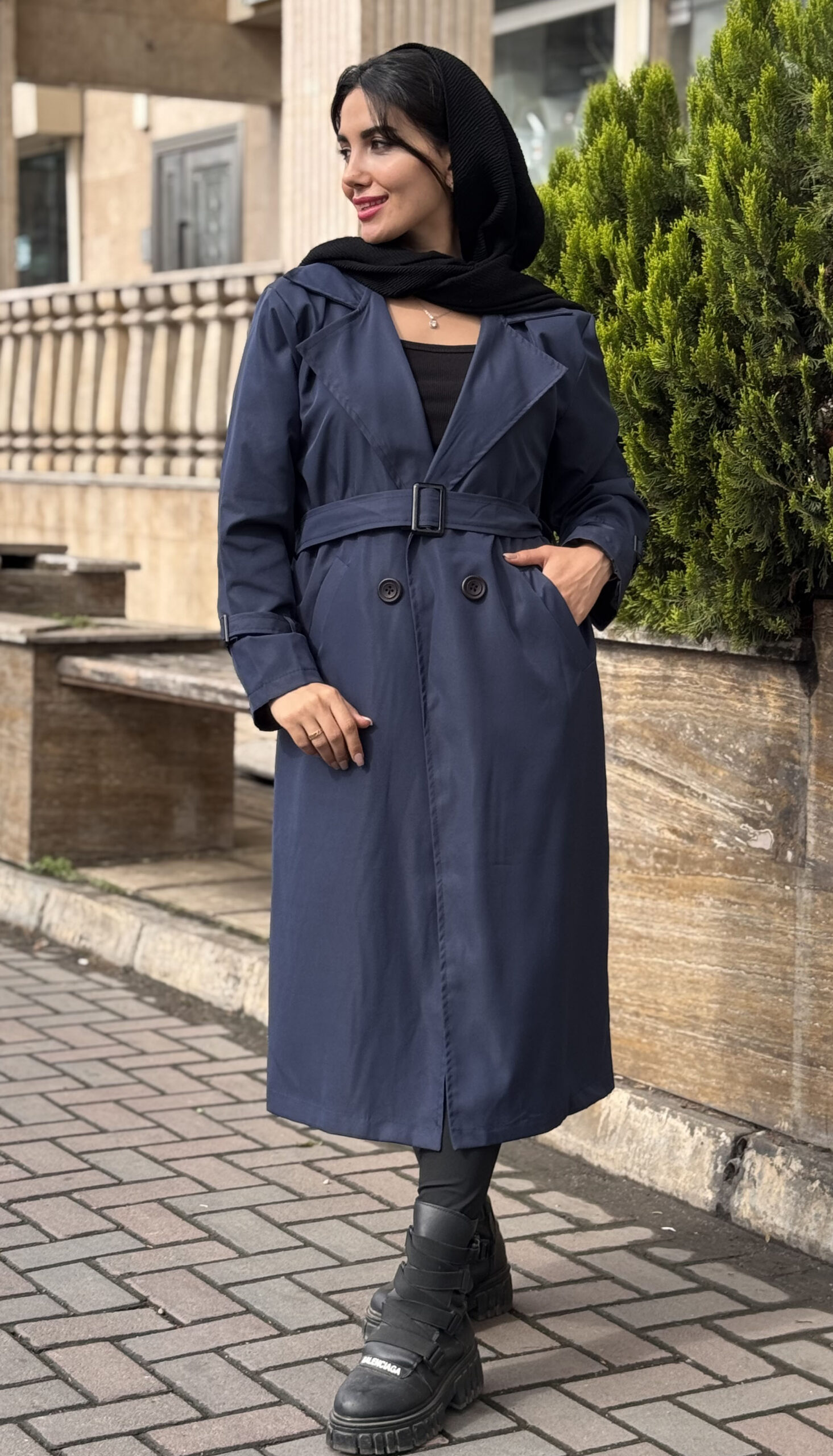 ترنچ کت کمربند داره و سر آستین هاش هم بند داره