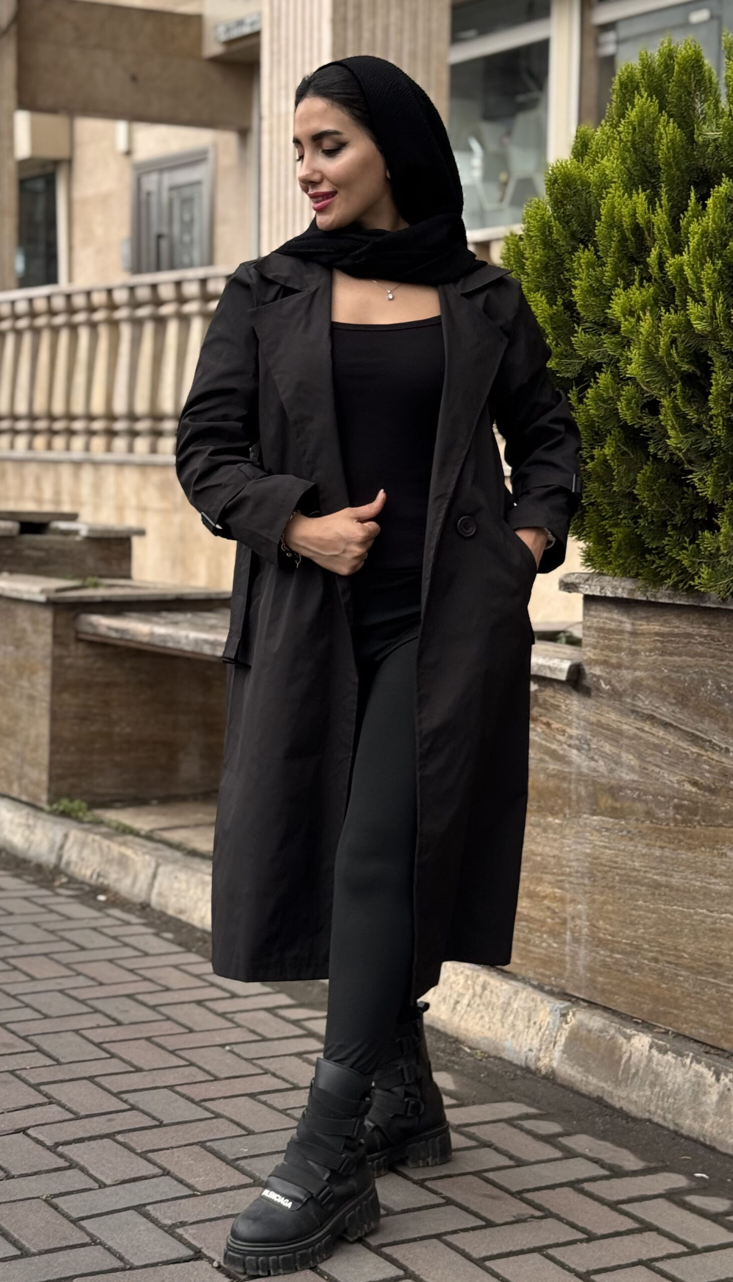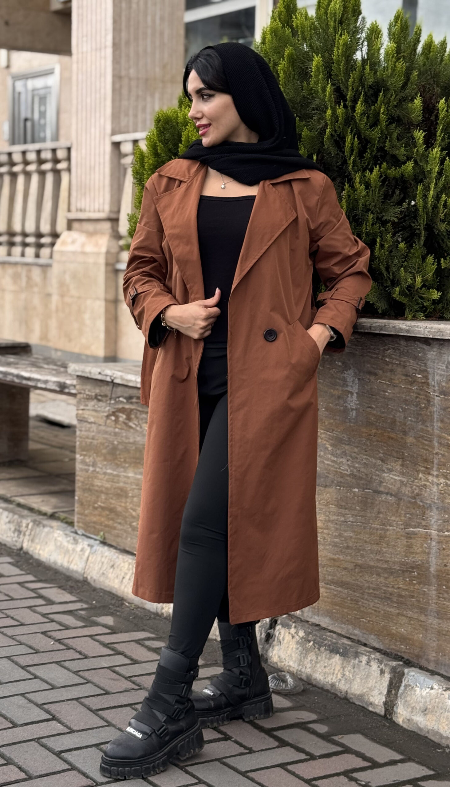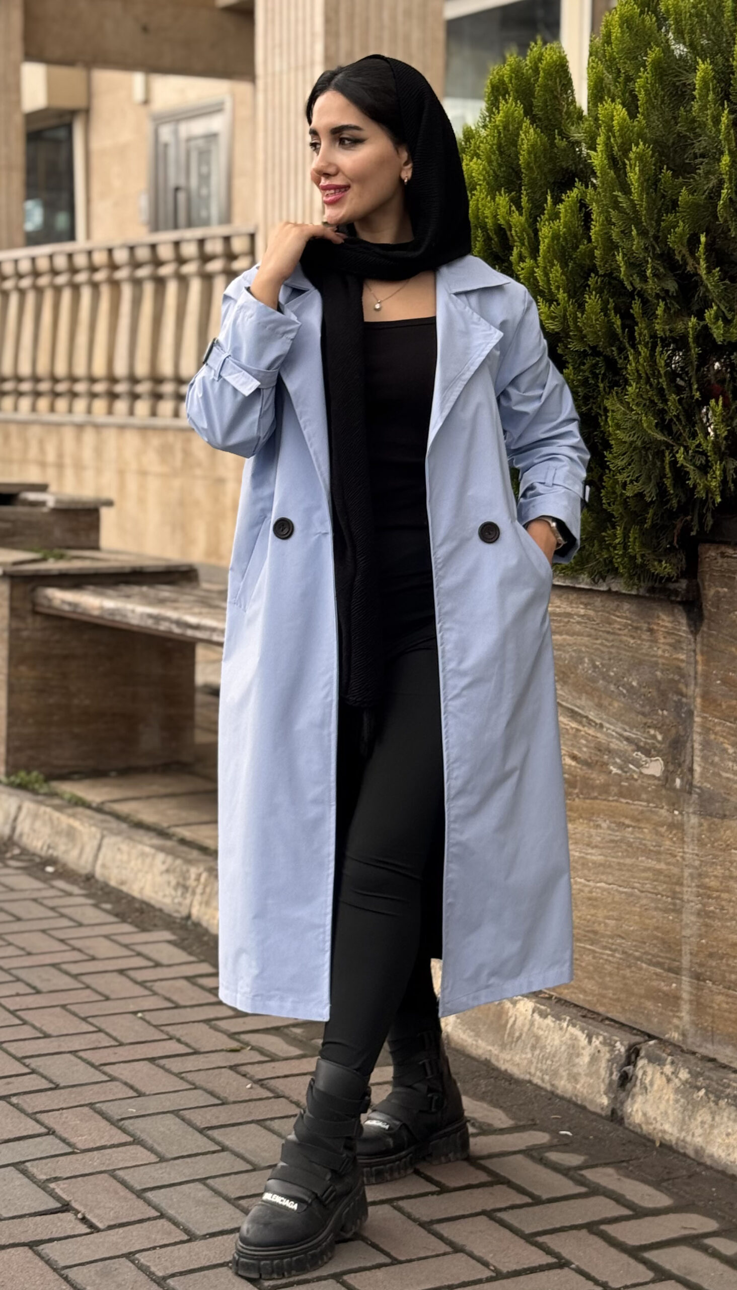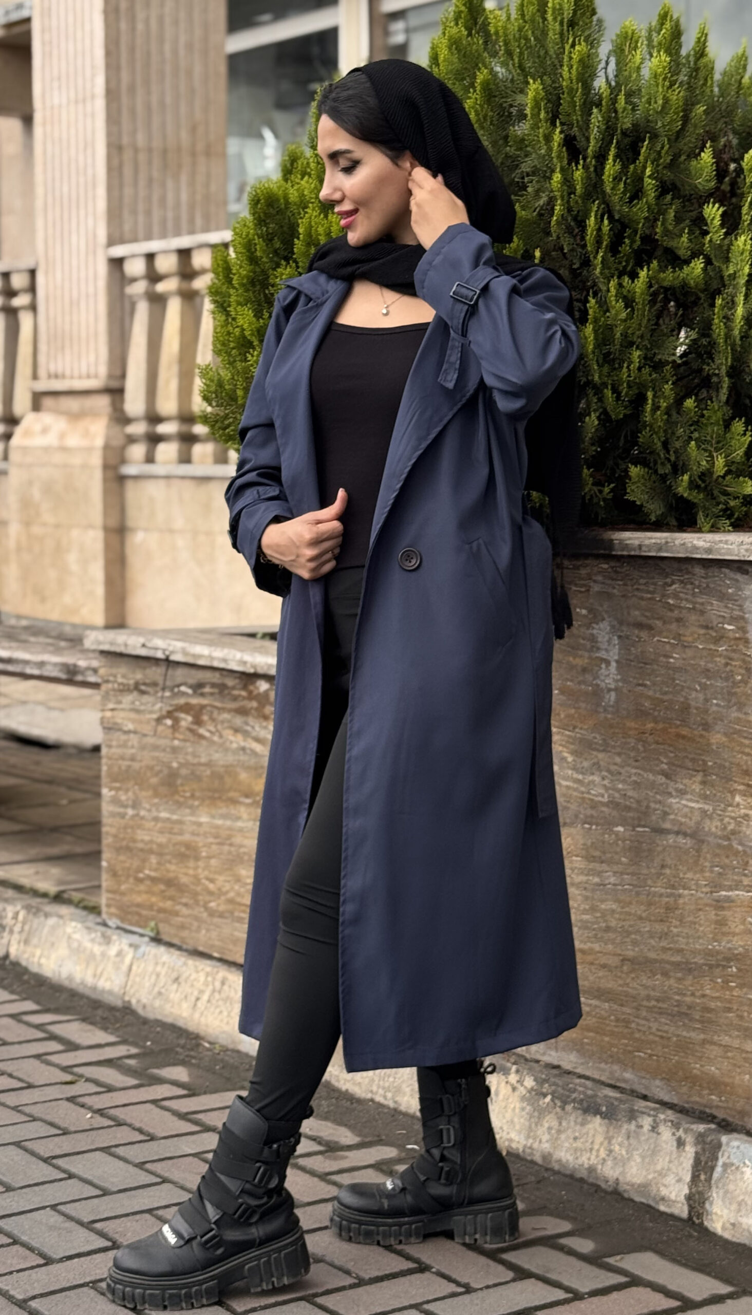 ترنچ کت کمربند داره و سر آستین هاش هم بند داره