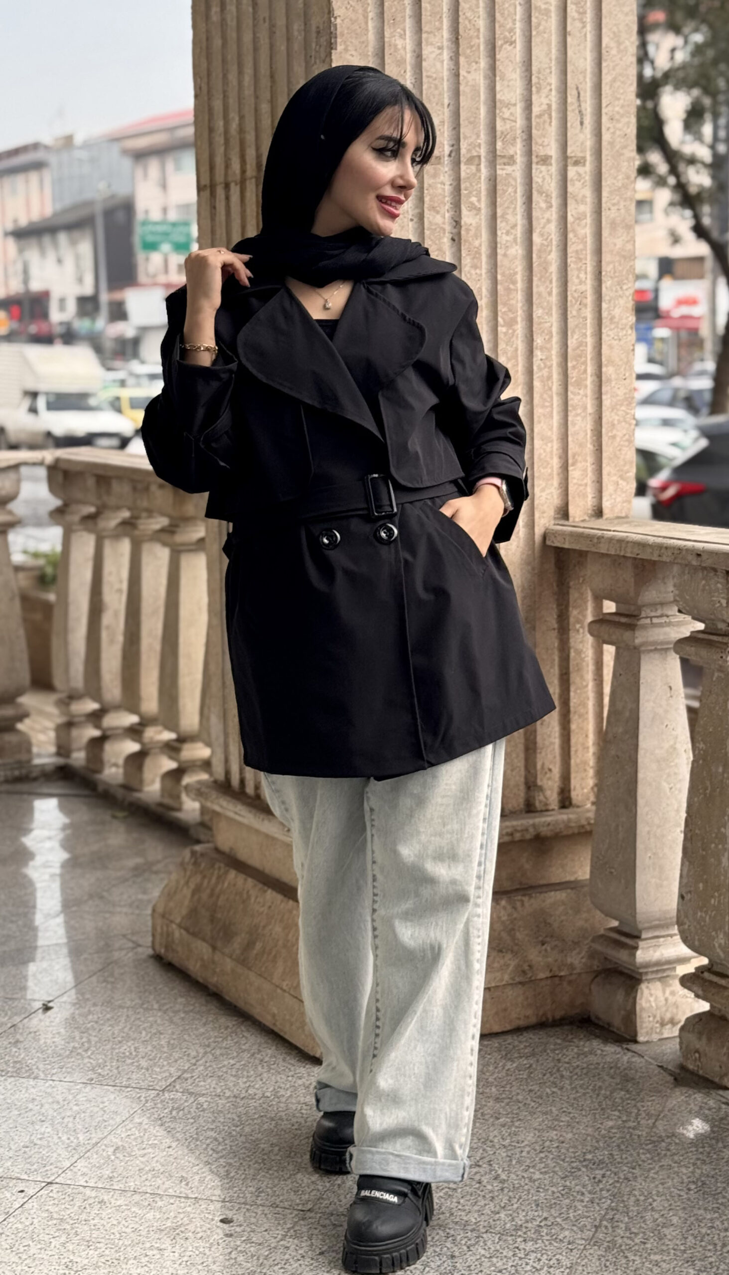 ترنچ کت بلند Zara مشکی کمربند دار کد 1609